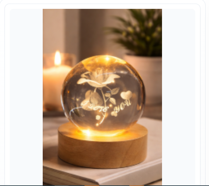 🌹 3D Crystal Ball LED Night Lamp with Engraved Rose & “I Love You” Design